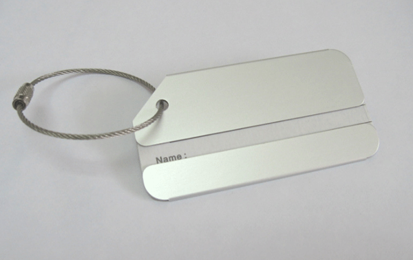 luggage tag ,metal material, size 4.4*7.5cm, with laser logo
